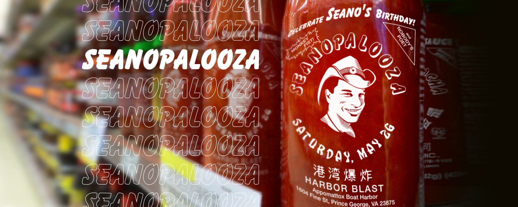 Our guitar player Sean's annual birthday bash. He's a big sriracha fan, so this made sense. The type on the left reminds me of the classic Chinese food take-out plastic bags.