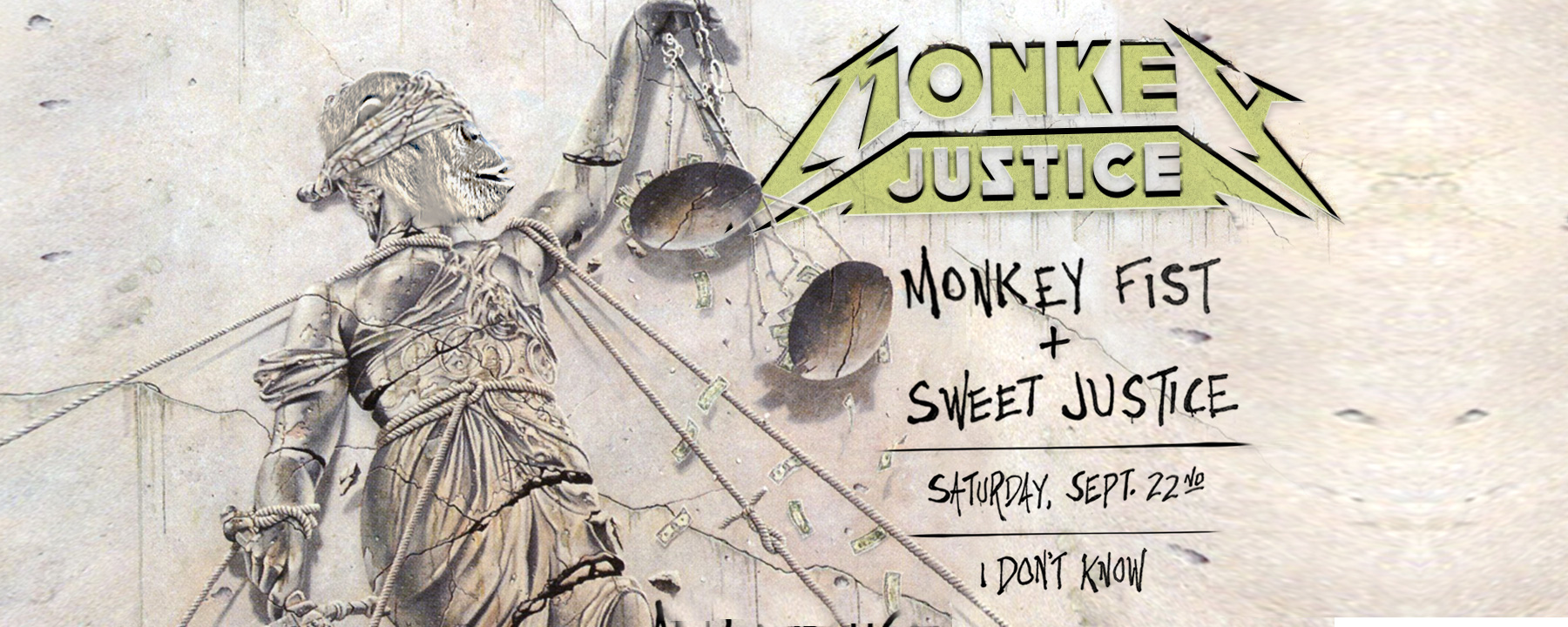 A mash-up of two Richmond-area bands, combined to form "Monkey Justice". The poster is a play on Metallica's ...And Justice for All album.