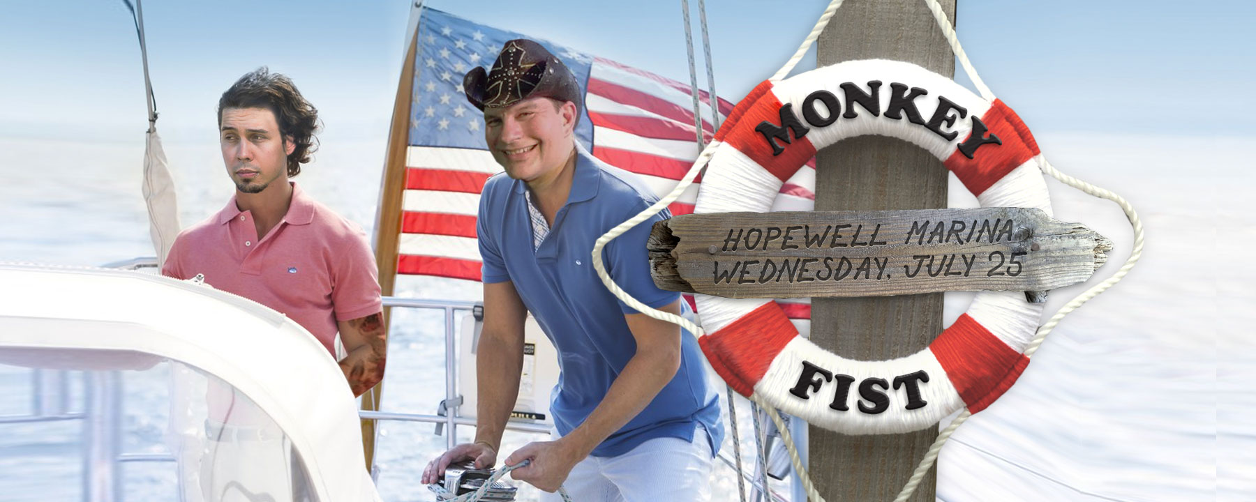 One of many Photoshop jobs where I put our faces into a funny scene. We were playing at a marina, so I ran with the nautical theme.